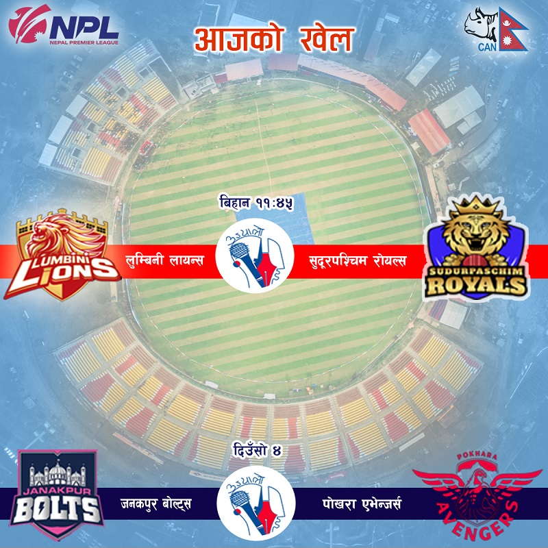 एनपीएलमा आज लुम्बिनी र सुदूरपश्चिम तथा जनकपुर र पोखरा खेल्दै