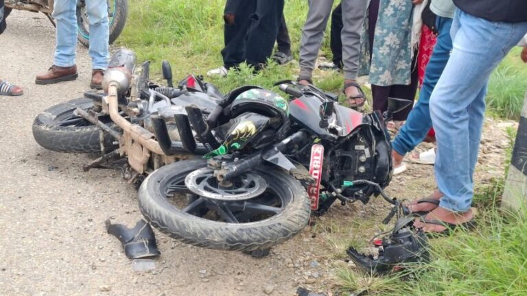 रोल्पामा ट्याक्टर र मोटरसाइकल ठोक्किदा दूर्घटना