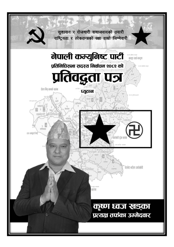 प्यूठान । नेपाली कम्युनिष्ट पार्टीले आगामी निर्वाचनका लागि प्रतिवद्धता पत्र सार्वजनिक गरेको छ । नेपाली कम्युनिष्ट पार्टीका उम्मेदवार कृष्णध्वज खड्काले चुनावी प्रतिवद्धता सार्वजनिक गर्दै जिल्लाको समग्र विकासका लागि काम गर्ने बताउनुभयो ।