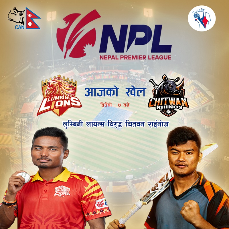 काठमाण्डौ – दोस्रो संस्करणको नेपाल प्रिमियर लिग एनपीएलमा आज लुम्बिनी लायन्स र चितवन राईनोज खेल्दैछन् । यी दुई टोलीबीचको खेल दिउँसो ४ बजे त्रिवि क्रिकेट मैदानमा शुरू हुनेछ ।
